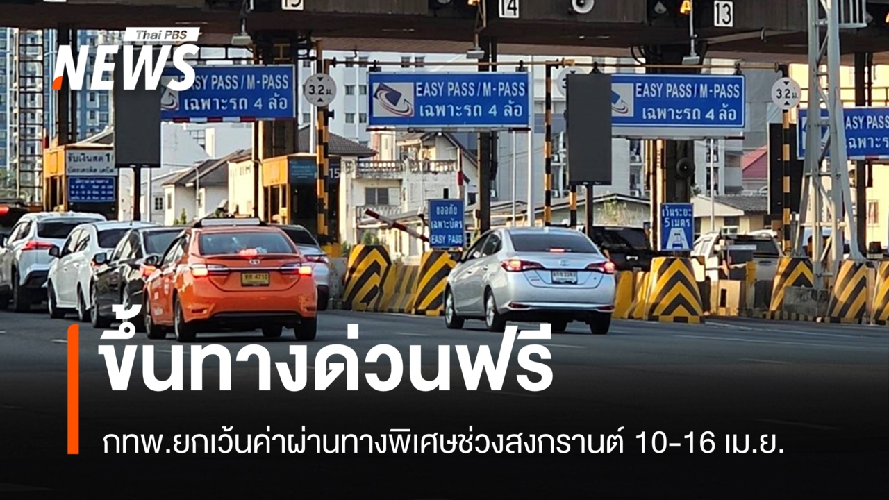 กทพ.ยกเว้นค่าผ่านทางพิเศษช่วงสงกรานต์ "บูรพาวิถี-กาญจนาภิเษก" 10-16 เม.ย. ส่วนทางพิเศษ "อุดรรัถยา-เฉลิมมหานคร" ขึ้นฟรี 13-15 เม.ย.นี้วันนี้ (7 เม.ย.2569) การทางพิเศษแห่งประเทศไทย (กทพ.) ประกาศยกเว้นค่าผ่านทางพิเศษช่วงเทศกาลสงกรานต์ 2569 ดังนี้