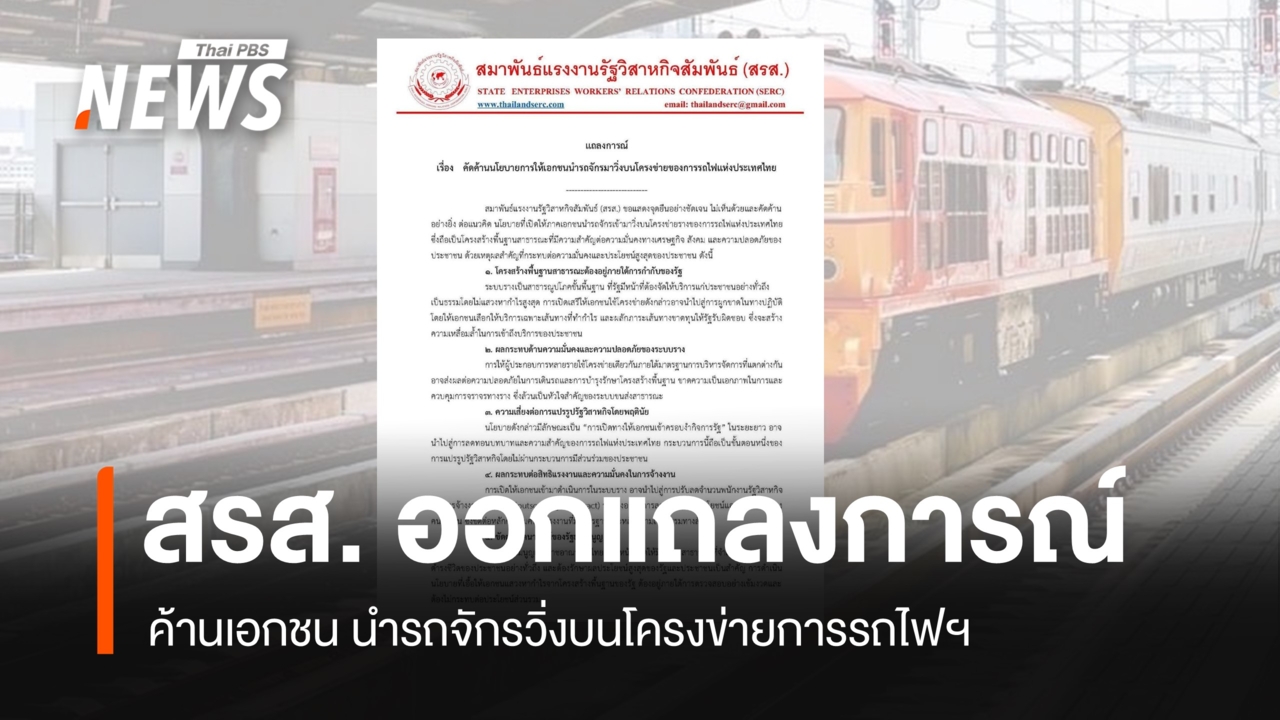 สมาพันธ์แรงงานรัฐวิสาหกิจสัมพันธ์ แสดงจุดยืนไม่เห็นด้วย คัดค้านแนวคิดให้เอกชน นำรถจักรมาวิ่งบนโครงข่ายรางของการรถไฟฯ ชี้กระทบความมั่นคง ความปลอดภัย และเสี่ยงผูกขาดบริการวันนี้ (23 เม.ย.2569) สมาพันธ์แรงงานรัฐวิสาหกิจสัมพันธ์ (สรส.) ออกแถลงการณ์ "คัดค้านนโยบายการให้เอกชน นำรถจักรมาวิ่งบนโครงข่ายของการรถไฟแห่งประเทศไทย" โดยแสดงจุดยืนไม่เห็นด้วยและคัดค้านต่อแนวคิด นโยบายที่เปิดให้ภาคเอกชนนำรถจักร เข้ามาวิ่งบนโครงข่ายรางของการรถไฟแห่งประเทศไทย ซึ่งถือเป็นโครงสร้างพื้นฐานสาธารณะที่มีความสำคัญต่อความมั่นคงทางเศรษฐกิจ สังคม และความปลอดภัยของประชาชน ด้วยเหตุผลสำคัญที่กระทบต่อความมั่นคง และประโยชน์สูงสุดของประชาชน มีรายละเอียดดังนี้